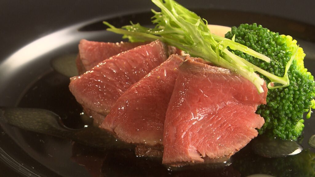 岡崎にあるイタリアンの「リストランテ ドーノ」もそのひとつ。オーナーシェフの中東さんはイタリアのミシュラン星付きの店で研鑽を積み、美山に店を構えました。実はレオさんとは同級生。「(レオさんは)解体がとにかく速いので、肉は新鮮で臭みがない」と信頼を寄せています。旧知の仲でもある生産者と料理人の固い絆が極上の一皿を生み出します。