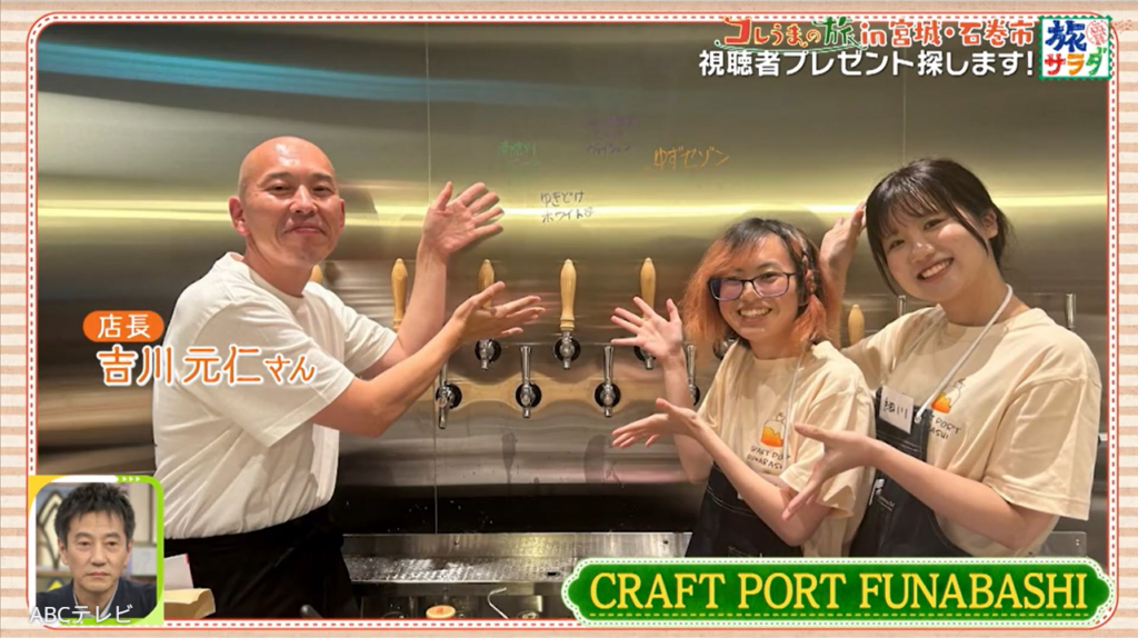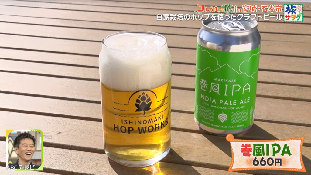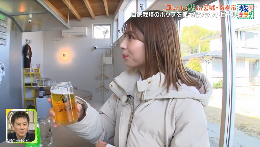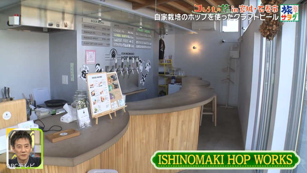 大仁田アナが出会った1人は、おいしいビールの情報を聞きつけて石巻を訪れたという、千葉県船橋市のクラフトビールバーのオーナーだ。彼が教えてくれたのは、ISHINOMAKI HOP WORKS(イシノマキ ホップ ワークス)。東日本大震災の津波被害で使われなくなった休耕地を再利用し、地元農家とホップを協力して栽培している、石巻唯一のブルワリーだ。