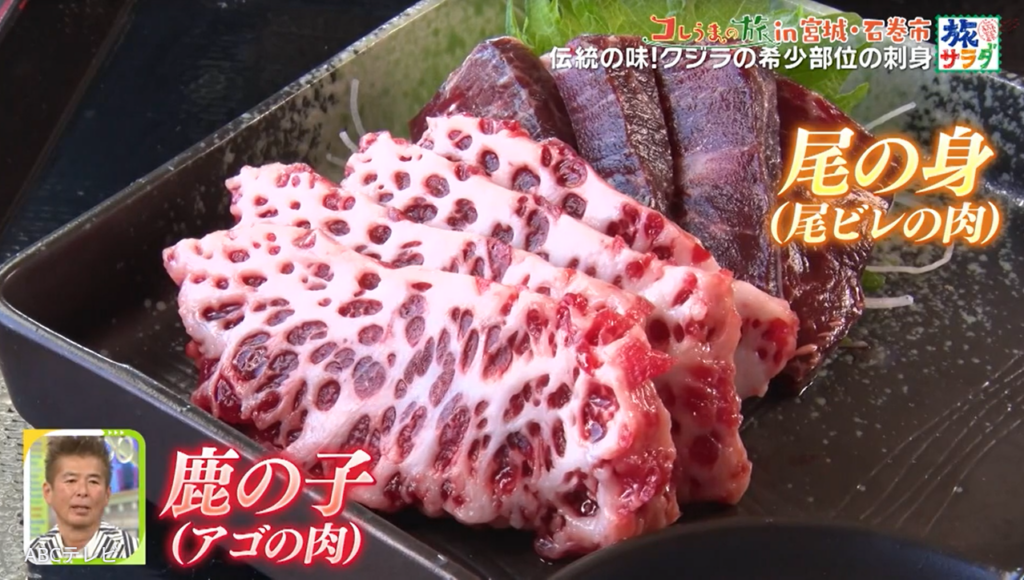 ほかにも大仁田アナは、石巻で地元民おすすめのグルメを堪能。ソウルフード“石巻焼きそば”や、名前の通りたこがたっぷり乗った“たこまみれ飯”、クジラの希少部位・尾の身(尾ビレの肉)と鹿の子(アゴの肉)の刺身を味わい、そのおいしさに感動した。