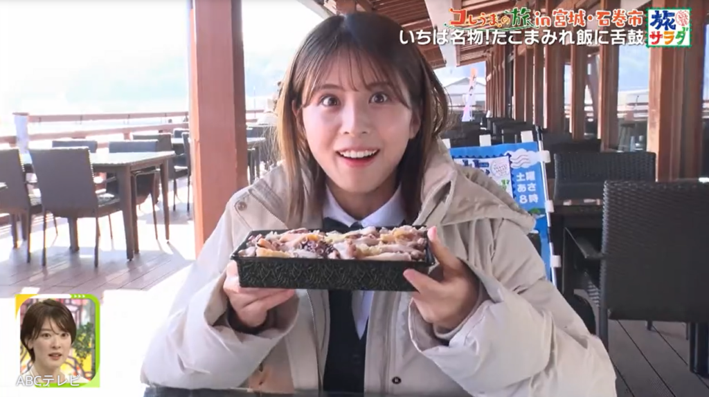 大仁田アナは、2023年4月にABCテレビに入社し、『朝だ!生です旅サラダ』9月2日放送回から「日本縦断コレうまの旅」コーナーを担当。アナウンサー歴4年目で『旅サラダ』歴およそ2年半の大仁田アナは、宮城県石巻市の絶品グルメを求めて、人々に聞き込み調査をした。