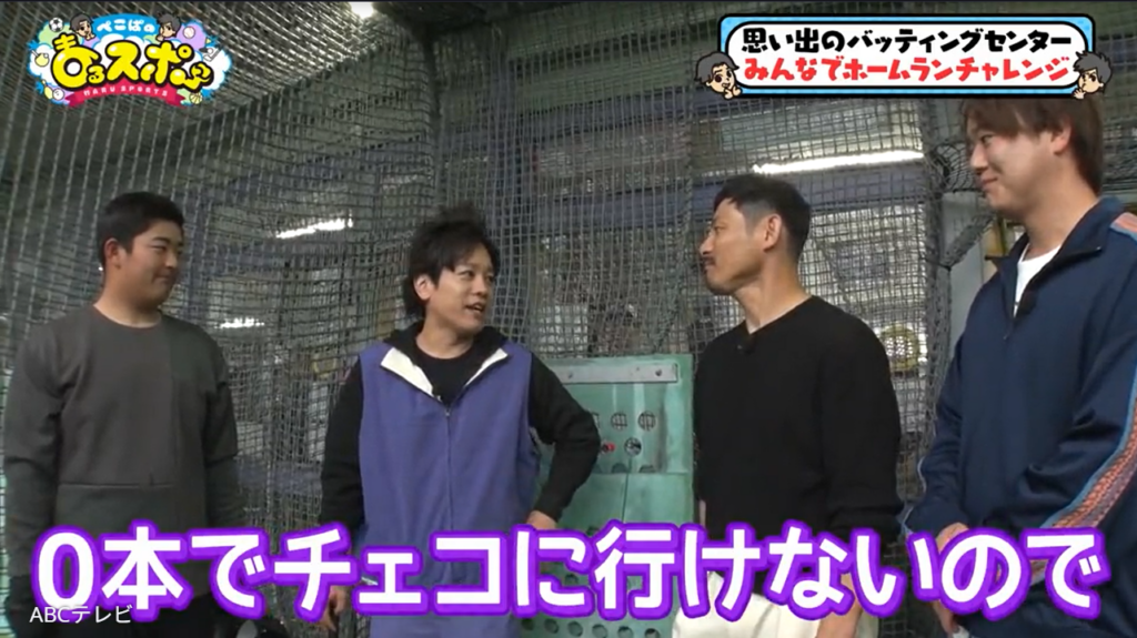 そんな荻野選手は、新天地チェコでの挑戦前に、高校の恩師が創業したバッティングセンターへ。お笑いコンビのぺこぱや、ここでホームランを100本以上打ったという地元のスーパー男子中学生とともに、球速110キロの硬式ボールを4人で100球打ってホームランを目指す“ホームランチャレンジ”に挑んだ。