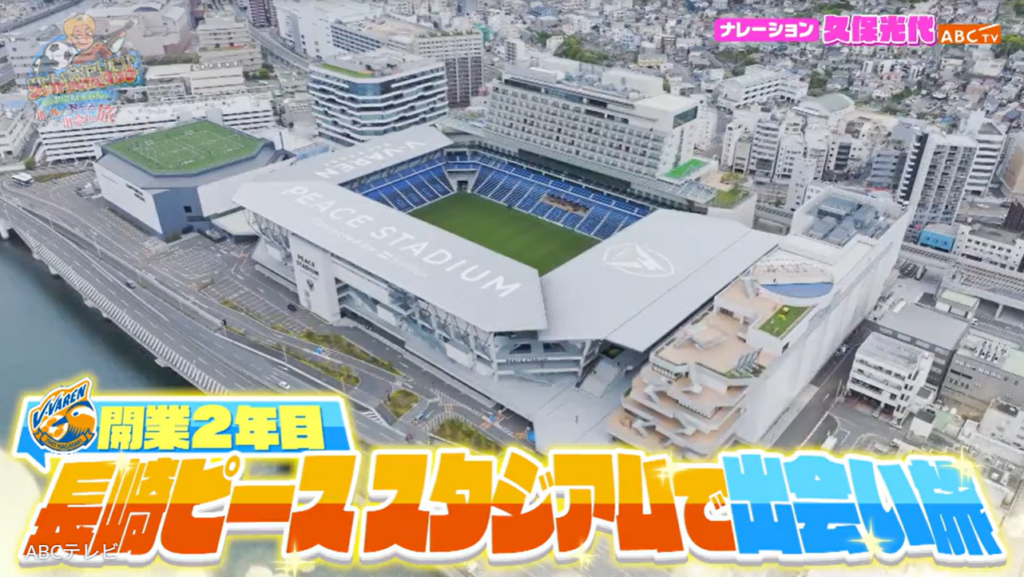 しんいちがやってきたのは、8年ぶりに J1に帰ってきたV・ファーレン長崎のホーム「長崎ピーススタジアム」。今回は、さまざまな魅力にあふれるという通称「ピースタ」を、施設の広報担当・赤峰蘭さんに案内してもらうことに。