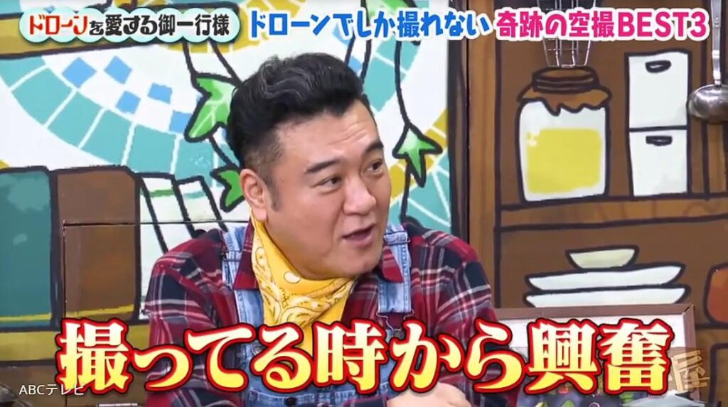 「自分でこれ(=ゴーグル)で(見ながら)撮っているわけでしょ? 撮っているときから興奮しちゃうよね」とザキヤマにたずねられると、白石さんは笑顔で同意。ドローン越しに見る光景は、大迫力で興奮したらしく、撮影時の表情を再現してみせ、スタジオの笑いを誘った。