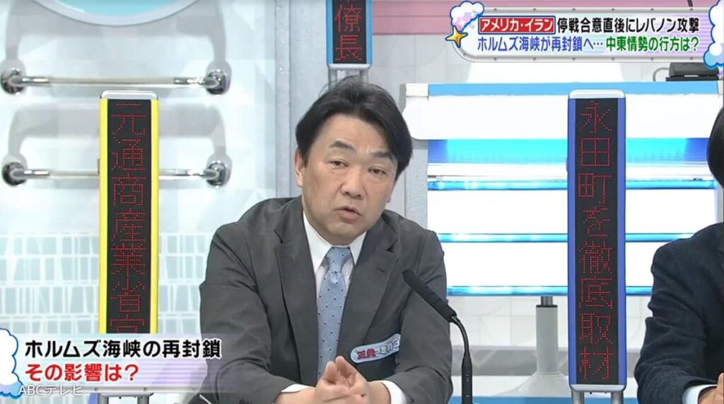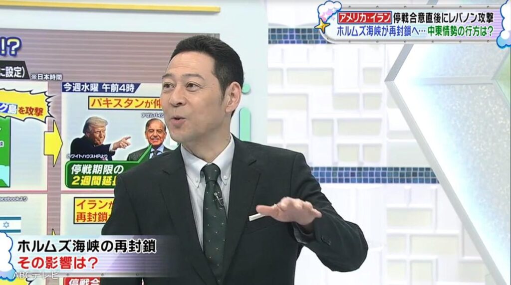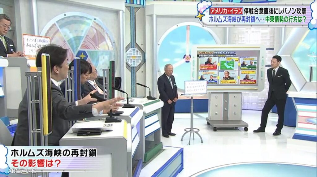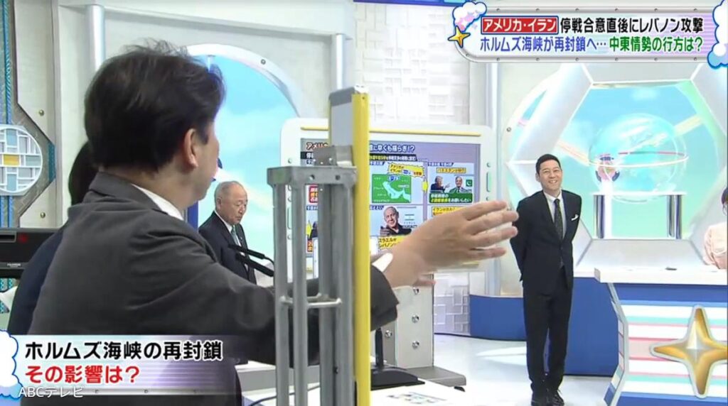 なお、アメリカ・イラン情勢におけるホルムズ海峡再封鎖問題は、4月11日に生放送された情報バラエティ番組『教えて!ニュースライブ 正義のミカタ』(ABCテレビ)で取り上げられた。