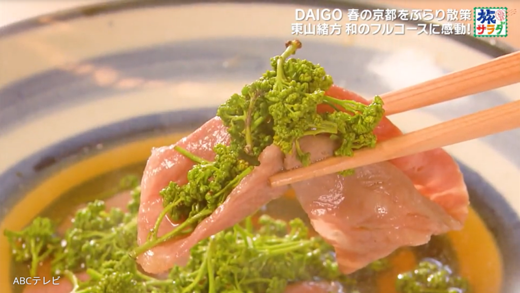 旅の最後には「その味を勉強させてもらいます」と、日本料理店・東山緒方に足を運んだDAIGO。ミシュラン二つ星に輝く名店で修業を積んだ板前たちが腕を振るうこのお店で、和のフルコースを堪能した。