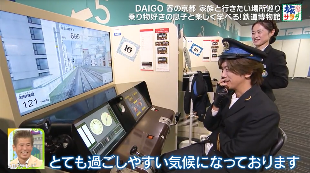 2児のパパ・DAIGOが、「2歳の長男とぜひ行きたい場所」ということで訪れたのは、京都駅の近くにある京都鉄道博物館。蒸気機関車から新幹線まで54両の⾞両を展⽰する、国内最⼤級の鉄道博物館だ。同館では、運転士が実際に訓練で使うシミュレータで電車の運転体験ができるため、DAIGOは息子と来館したとき用に予行練習することに!