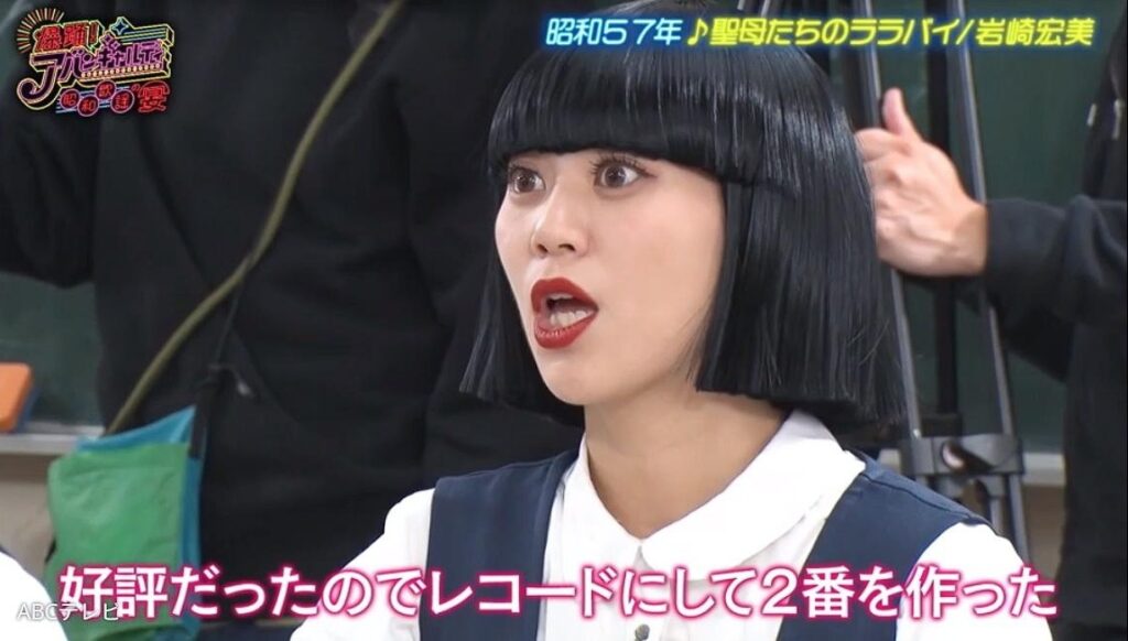 なお、「聖母たちのララバイ」の秘話や岩崎の歌唱映像は、4月13日深夜に放送されたアバンギャルディの地上波初の冠番組『爆踊!アバンギャルディ 昭和歌謡の宴』(ABCテレビ)で紹介された。