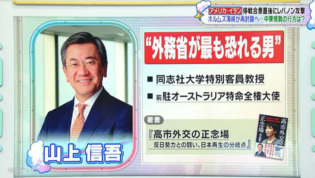 山上氏は思わず吹き出し「本来それはね、外交官として言っちゃいけないこと」とコメント。それを聞いて「あれっ、言っちゃダメ…?」と慌てる久保アナに、「ただ私もう辞めましたんでね、いち民間人、評論家ですから自信もって言うんですけど」と続ける山上氏。