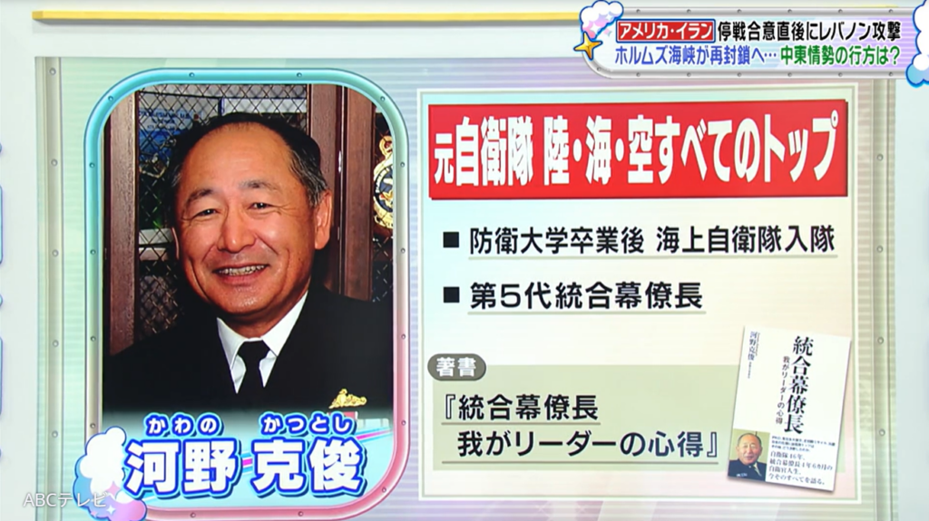 「この状況って、どうなってしまってるんですかね?」と、もうひとりのゲスト・元自衛隊制服組トップの河野克俊氏に尋ねる久保アナ。