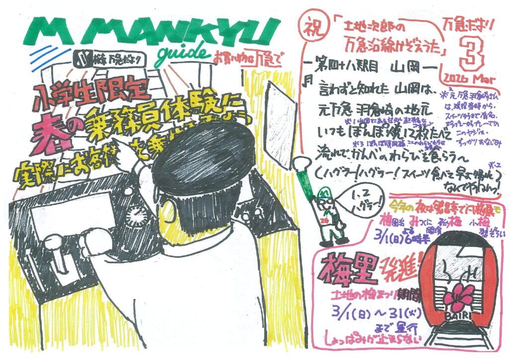 手書きのイラストで描かれた万急だよりも毎月発行しており、これをなんと10年ほど続けている。