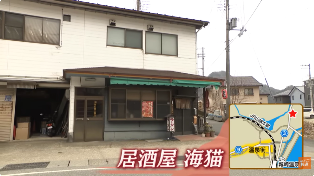 城崎温泉の温泉街から少し外れた場所にある居酒屋「海猫」。店を営むのは宮嶋政行さん(79)と、ムードメーカーの妻・麗子さん(74)のご夫婦。お客さんのほとんどが旅館の従業員など地元の人々で、観光地でありながら良心的な値段のメニューが並びます。