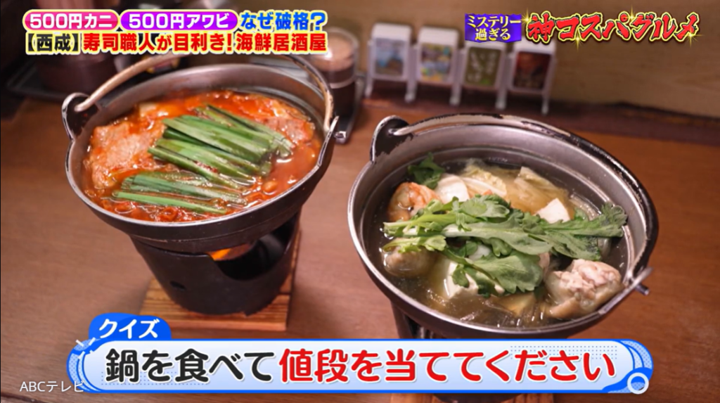 大阪・西成で見つけた、高級食材を使った“豪華過ぎる鍋”のお値段は……? 「なるみ・岡村の過ぎるTV」では、ミステリー過ぎる“神コスパ”グルメに迫った。