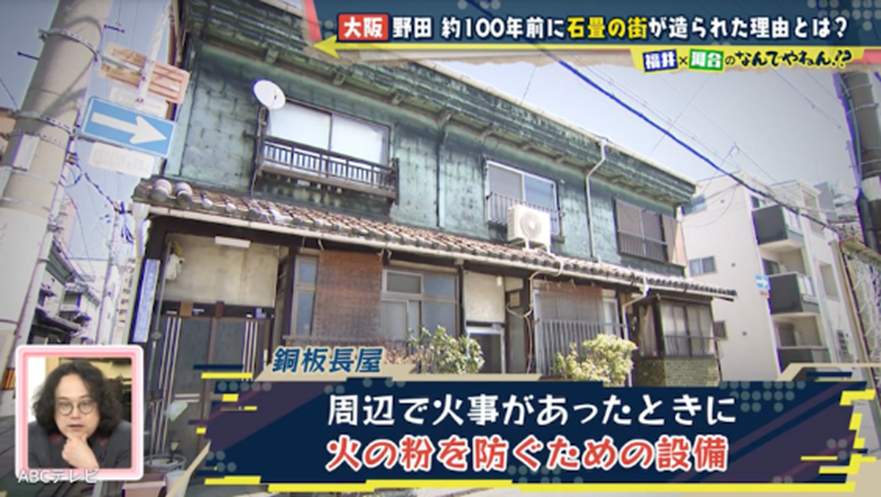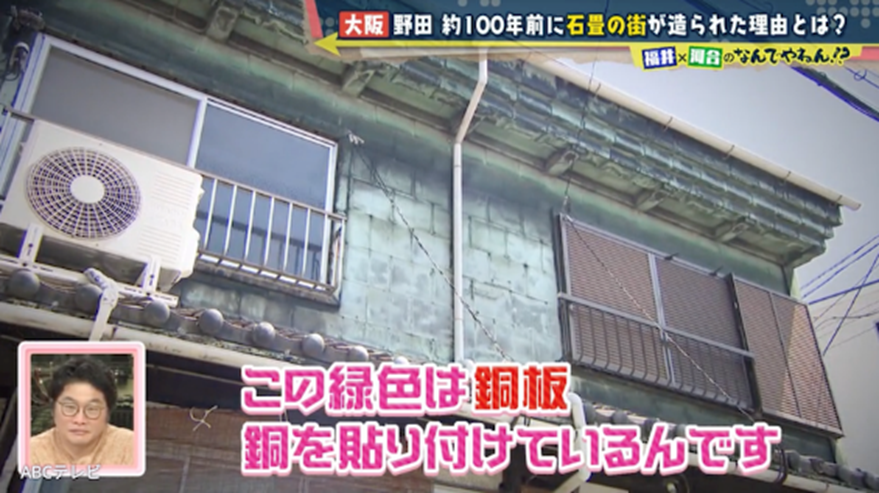 これは、銅板がはりつけられているもので「銅板長屋」と言われている。この銅板が、周囲で起こった火事の火の粉から、家を守るための重要な防火設備の役割を果たしたのだという。